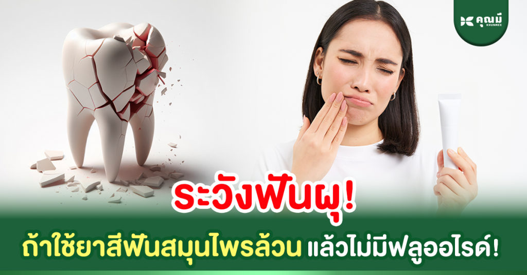 - ถ้าคุณใช้ยาสีฟันสมุนไพรที่ “ไม่มีฟลูออไรด์” ฟันอาจสะอาดและลมหายใจหอมสดชื่นก็จริง แต่ยังมีโอกาสฟันผุสูง
